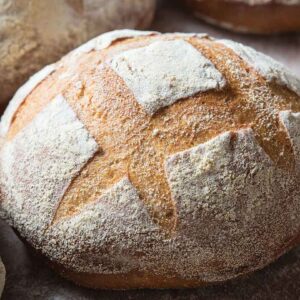Sourdough is a slightly sour, dense white bread with a chewy crust. It’s excellent for grilled cheese, toasted for breakfast or as a “more substantial” sandwich bread. (450 grams)