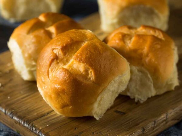 Sourdough is a slightly sour, dense white bread with a chewy crust. A nice upgrade to the standard white dinner roll. (540 grams / 12 rolls)